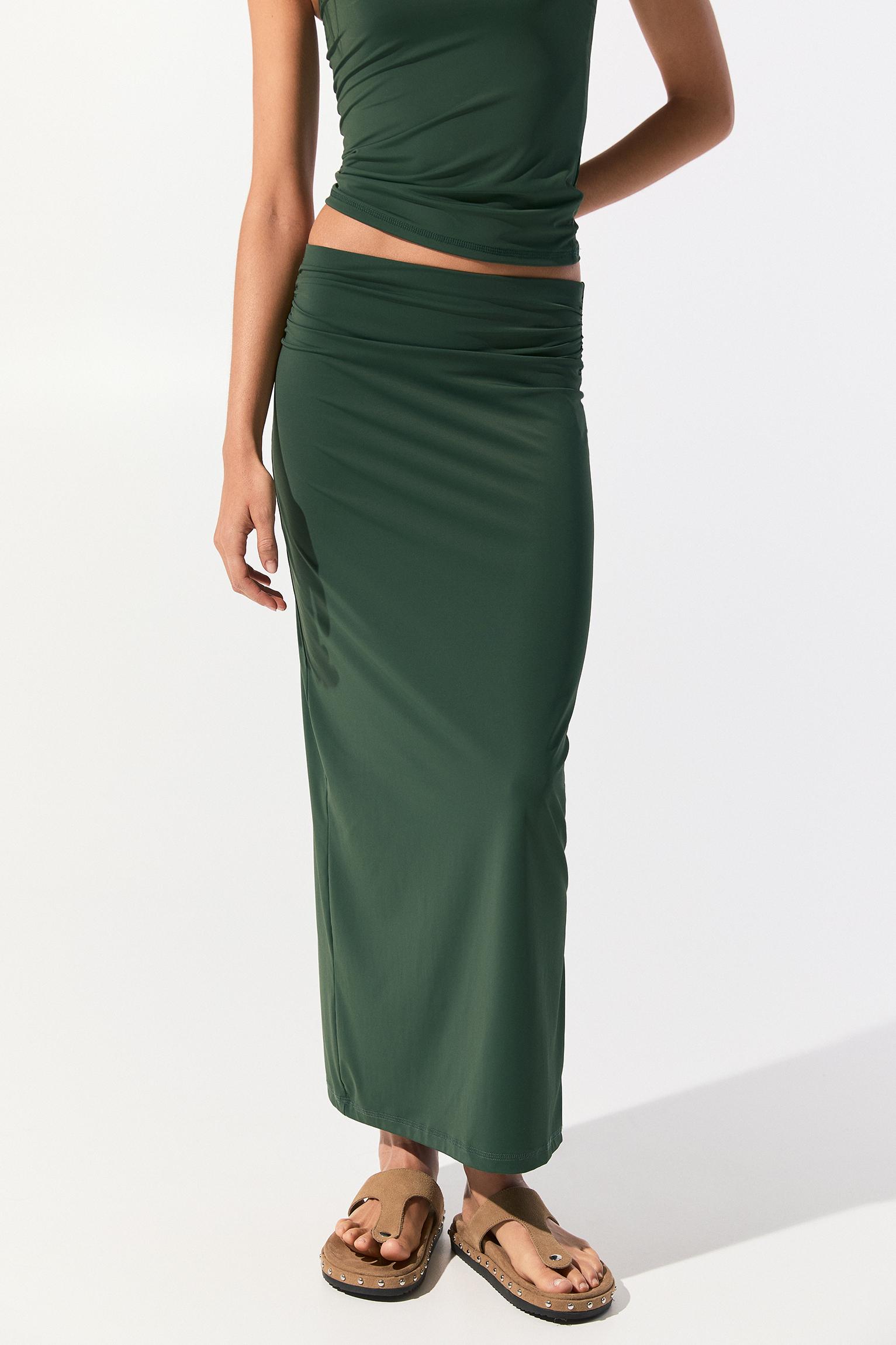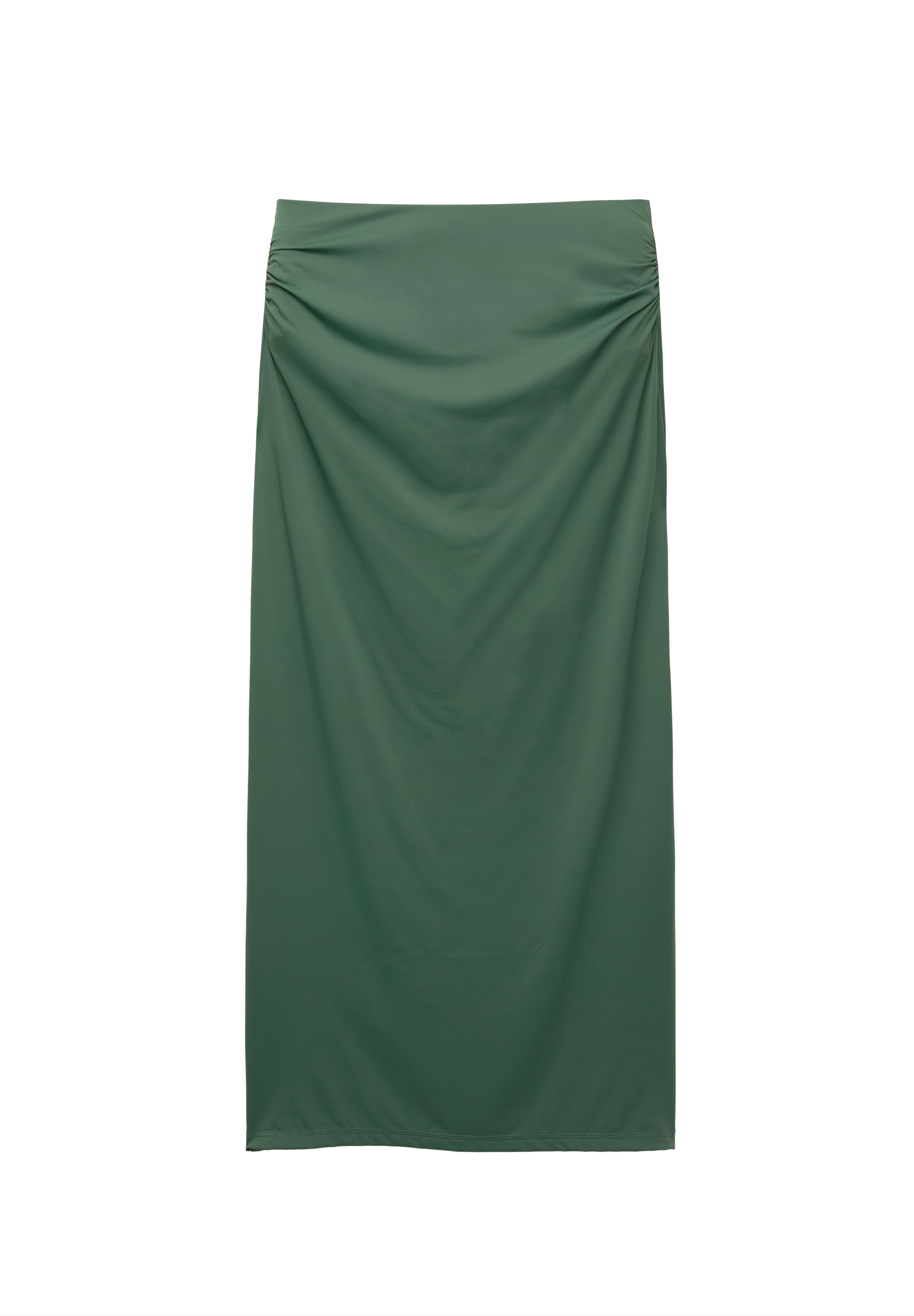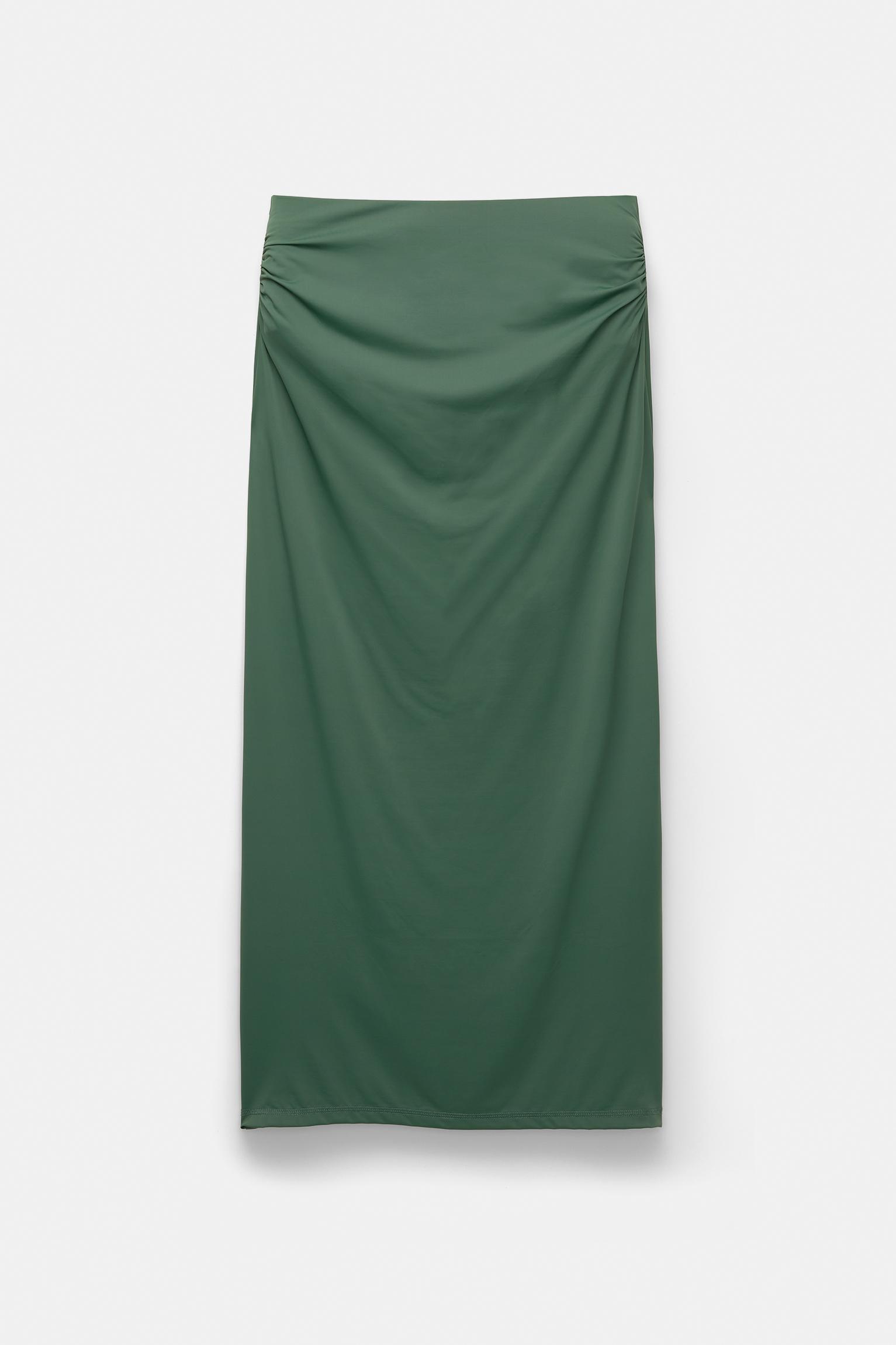 Fitted polyamide midi skirt with gathered detail. Made of slightly stretchy fabric.